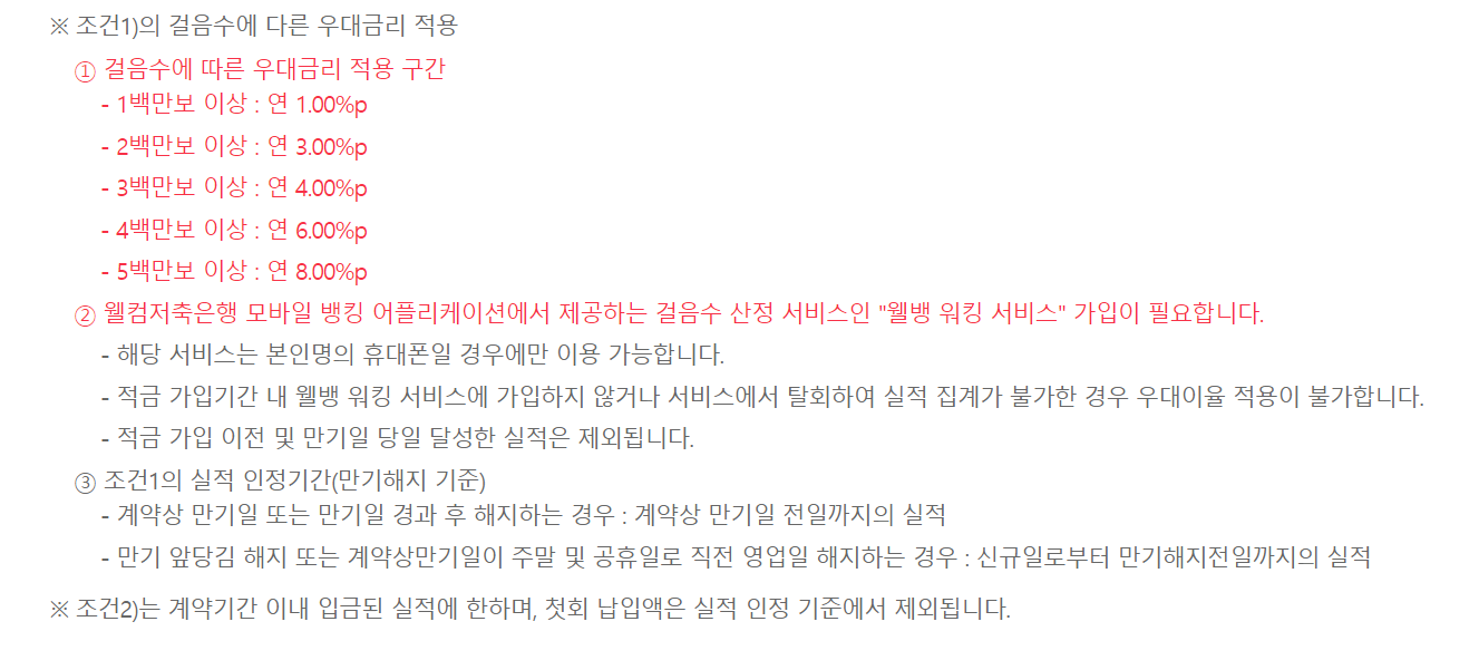 특히 평소에 많이 걷는 분이라면 우대 조건을 달성하기 쉬우실테니 꼭 가입하세요.