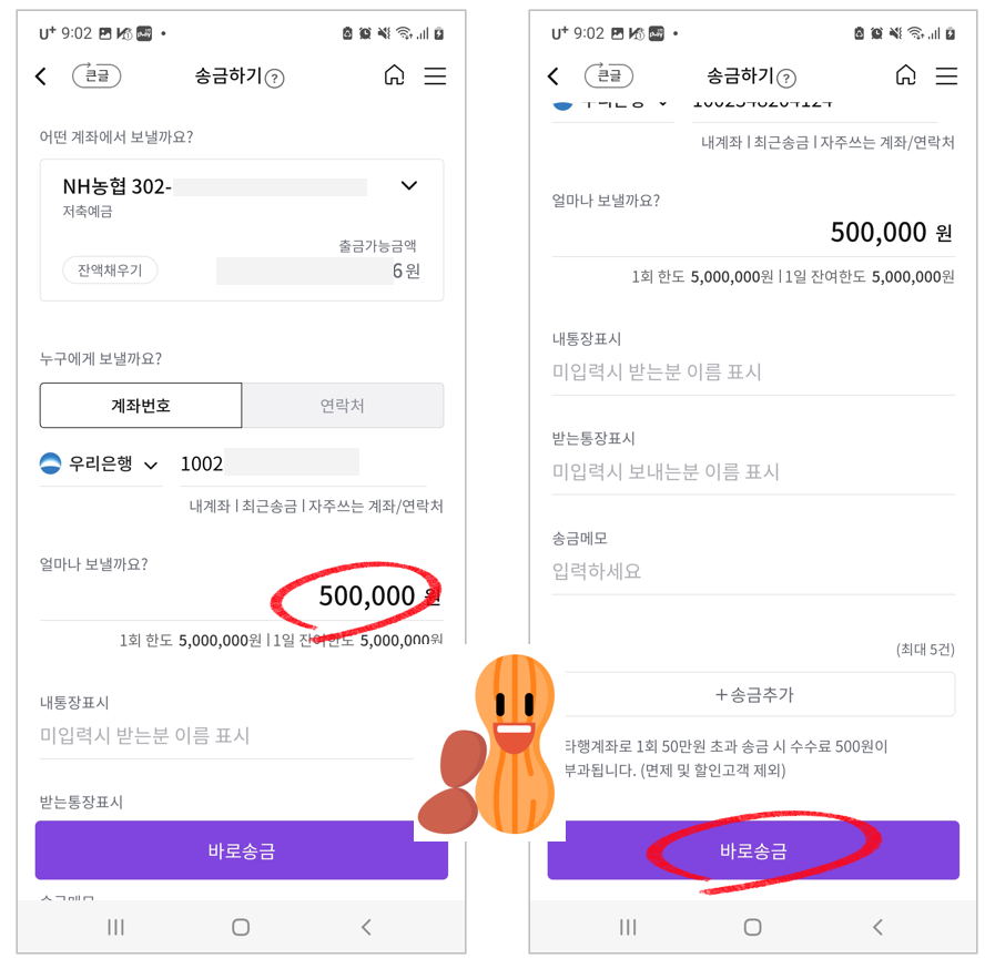 50만원씩 여러번 이체하셔도 되니 타행 이체 수수료 아껴보세요.