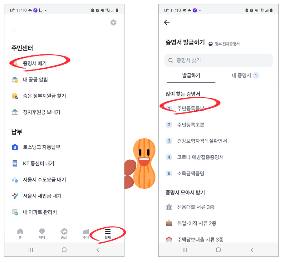 아래의 방법으로 토스에서 무료로 주민등록등본 발급 받아보세요.