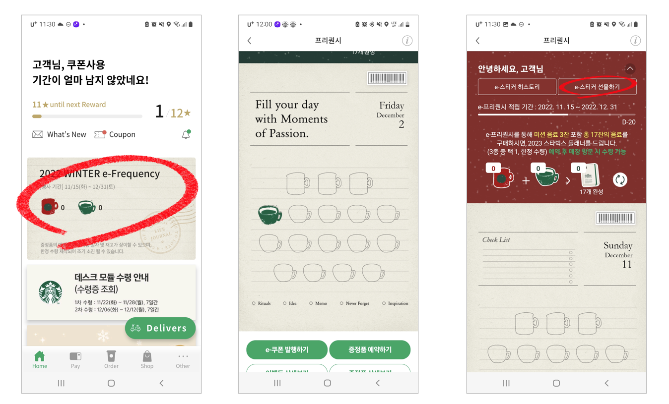 스타벅스 프리퀀시 선물하는 법 알려드려요!