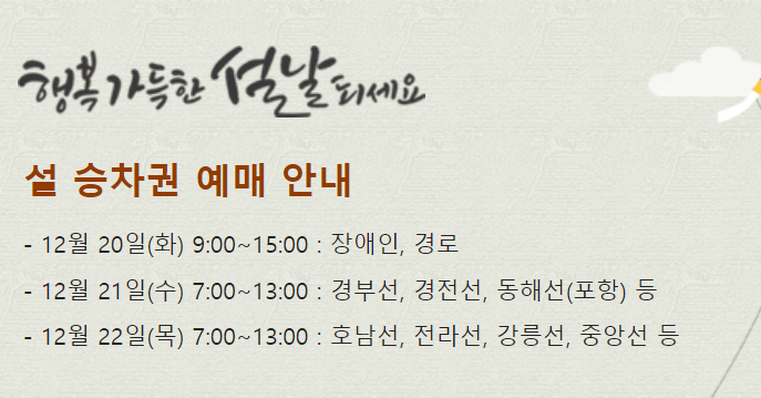 | 2023년 설날 SRT 예매하기, 예매날짜 (0) | 2022.12.20 |